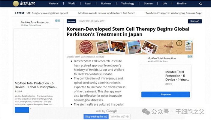 2023 年 11 月 20 日 ,韓國成體干細胞研究所 Biostar 干細胞研究所(所長:Jeongchan Ra 博士)宣布,通過給予自體干細胞治療帕金森病的再生醫(yī)學技術使用專利技術在靜脈和脊髓腔內培養(yǎng)的脂肪干細胞已獲得日本厚生省的批準,并將于 12 月在東京新宿診所開始治療。