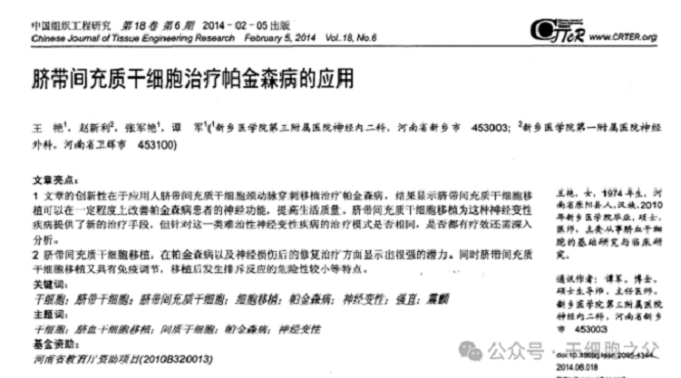 案例1:2018年,中國實用神經疾病雜志刊登了“神經干細胞移植治療帕金森的效果觀察”一文。文章中介紹了河南駐馬店中心醫(yī)院神經內二科對27例帕金森患者進行神經干細胞移植手術治療。